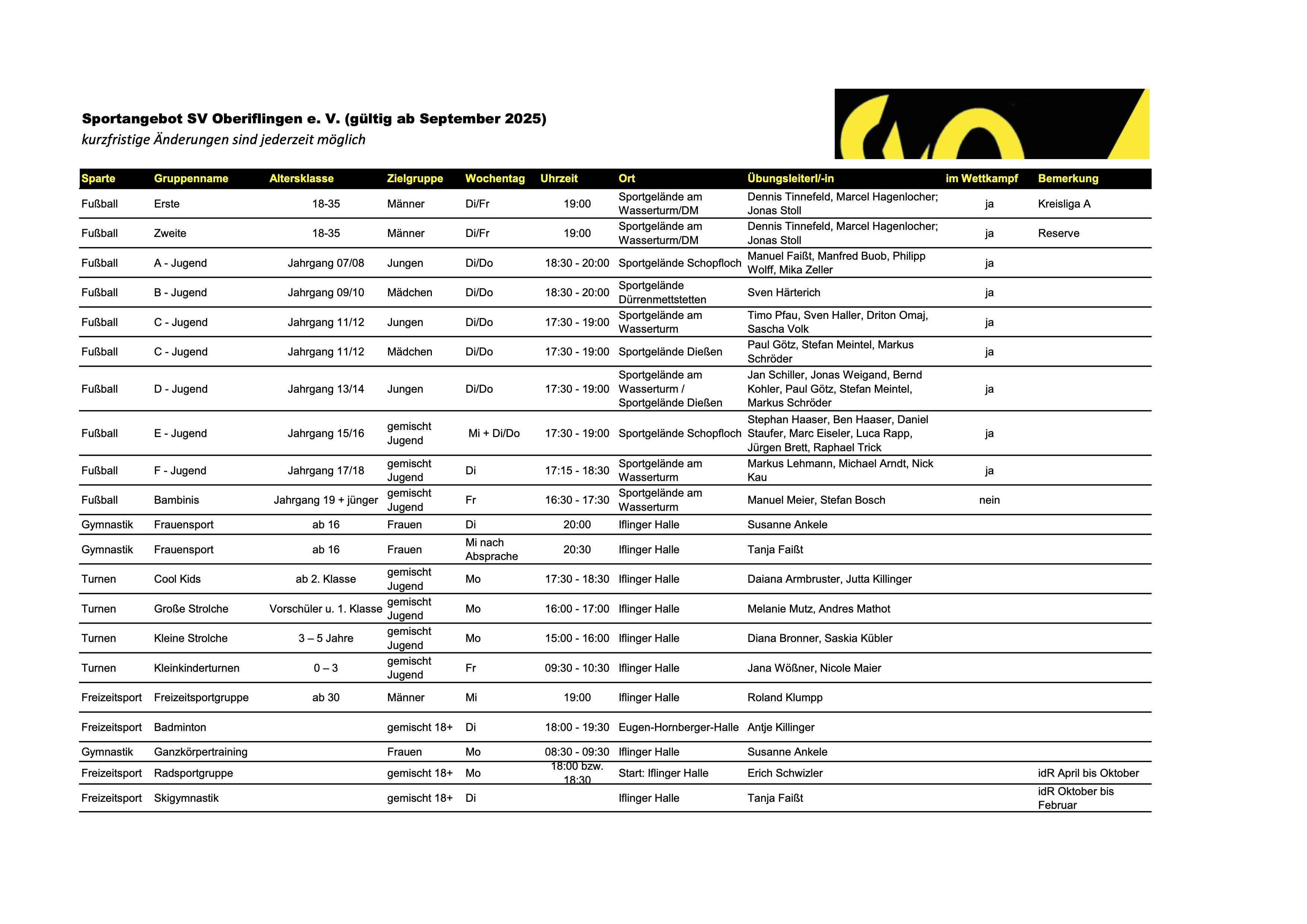 Der SV Oberiflingen bietet eine große Bandbreite an Sportmöglichkeiten und hat sich vom reinen Fußballverein über die Jahrzehnte hinweg enorm in die Breite entwickelt.